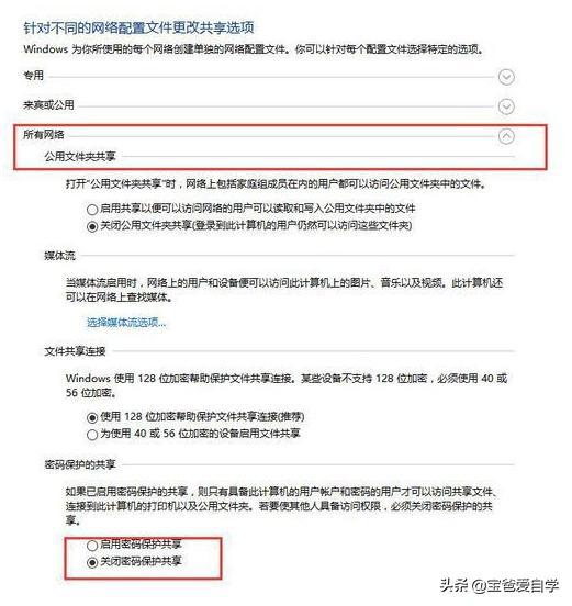 第二,在网络设置中,选择“关闭密码以保护共享”。