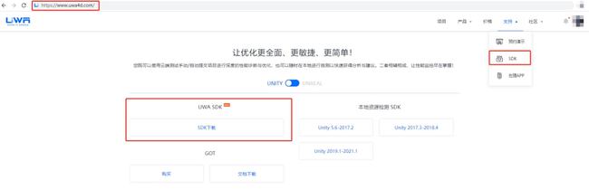 连接到UWA官方网络,从所提供的链接下载UWA SDK,然后将未压缩的包文件并入项目。