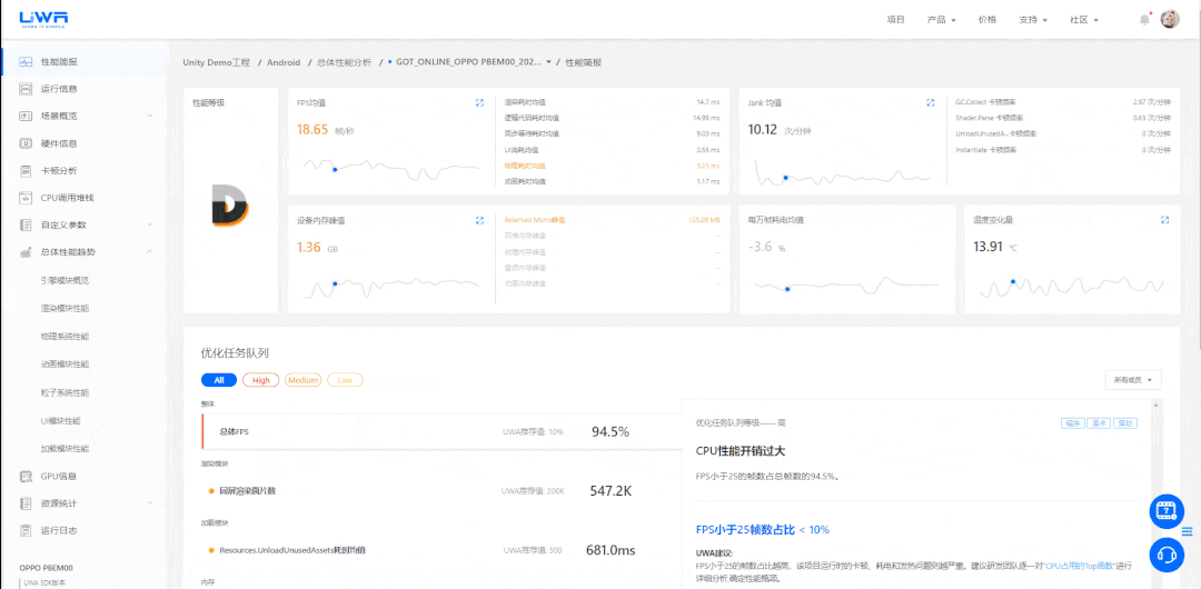 UWA管道的“多设备自动化测试”与其他UWA产品服务相结合,使项目团队能够将“开发-测试-反射”迭代节奏带到一个新的层次,从而能够彻底测试和验证研究与开发过程中的每项变化,并迅速发现和解决诸如热、卡登、坠机等不同性能问题,从而“充分启动项目”。