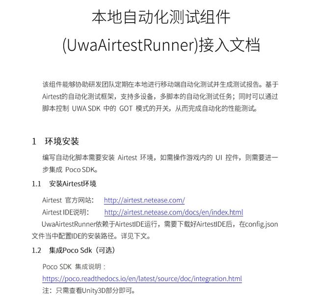 还有一项一般要求是将Poco SDK纳入项目,以便优化脚本准备。 在UWA管道服务中心,我们为“多设备自动化测试”提供了指令和组件下载。 根据文件的内容,用户可以简单地识别Poco-SDK的下载链接。