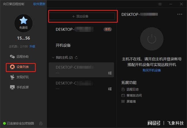 另一方面,如果需要对公司计算机进行家庭控制,您可以去[设备列表] -- -- [添加设备],并将公司计算机添加到“我的主机”,如下图所示。