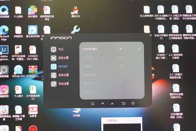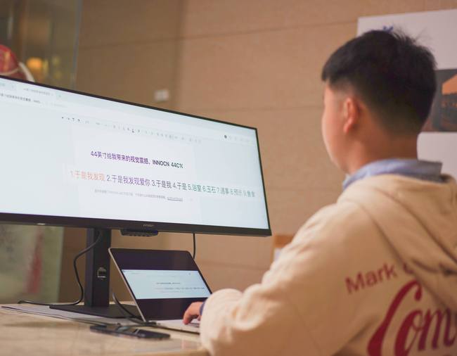 监视器在监视器后面有一个按键,它可以安装或拆除显示器,我注意到,如果你不使用楼梯,有墙洞,INNOCN显示器可以挂挂起来,两侧都有两个扬声器,必须提到INNOCN毕竟非常聪明,这样长的屏幕,如果桌面不够大,显示器就足够大。