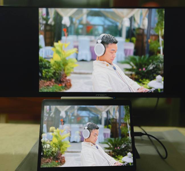 我比较了许多地图, 如果我不放大, 两者的颜色非常接近, INNOCN 44的颜色会更加饱和和愉快, 观察者耳机的边缘会扩大, INNOCN显示的紫色边缘会比iPad Pro上显示的更明显, 这意味着显示器更彩色,更接近iPad Pro, 但是显示器的颜色会更喜悦和详细。