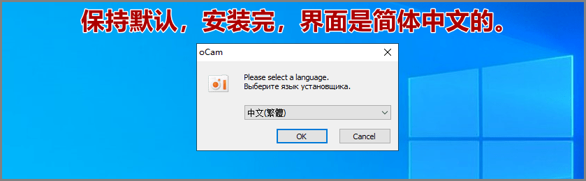 下载软件后, 双击即可开始安装; 安装时, 您必须选择下面图表中默认的语言。 在撰写中文时, 您可以按原样离开。 投放框中没有中文本的选择, 但是安装完成后, 它会立即成为中文本界面 。