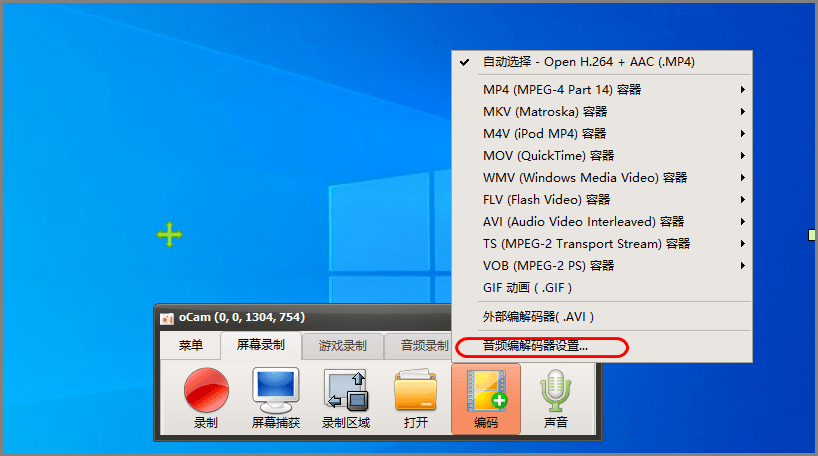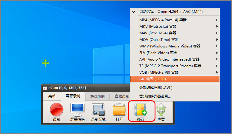 点击程序工具栏的代码, 有几个记录格式是可选的, 但建议不修改, 因为默认 MP4 已经是最好的视频格式 。