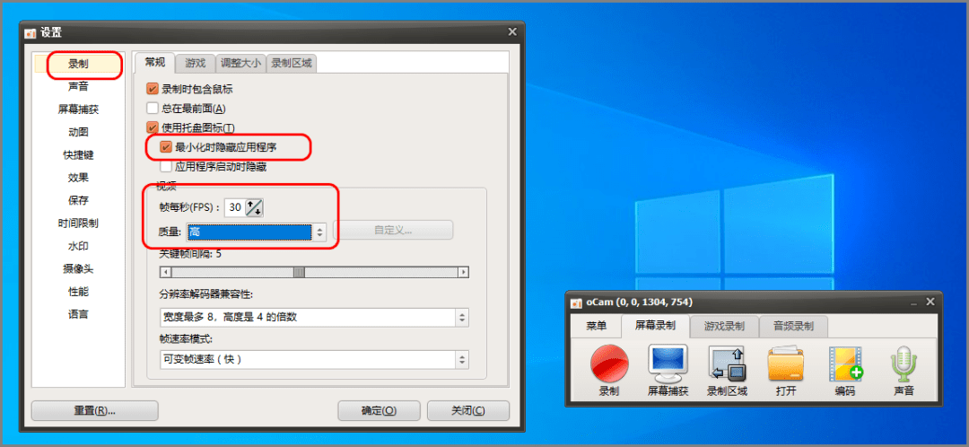 强烈建议选择“ 最小化时隐藏应用程序” 复选框 。”当您不想让任何人看到您的屏幕程序而将其记录下来时, 您可以将其最小化, 这样任务栏上就不会有图标。 然后您会使用快捷键打开或关闭录音 。