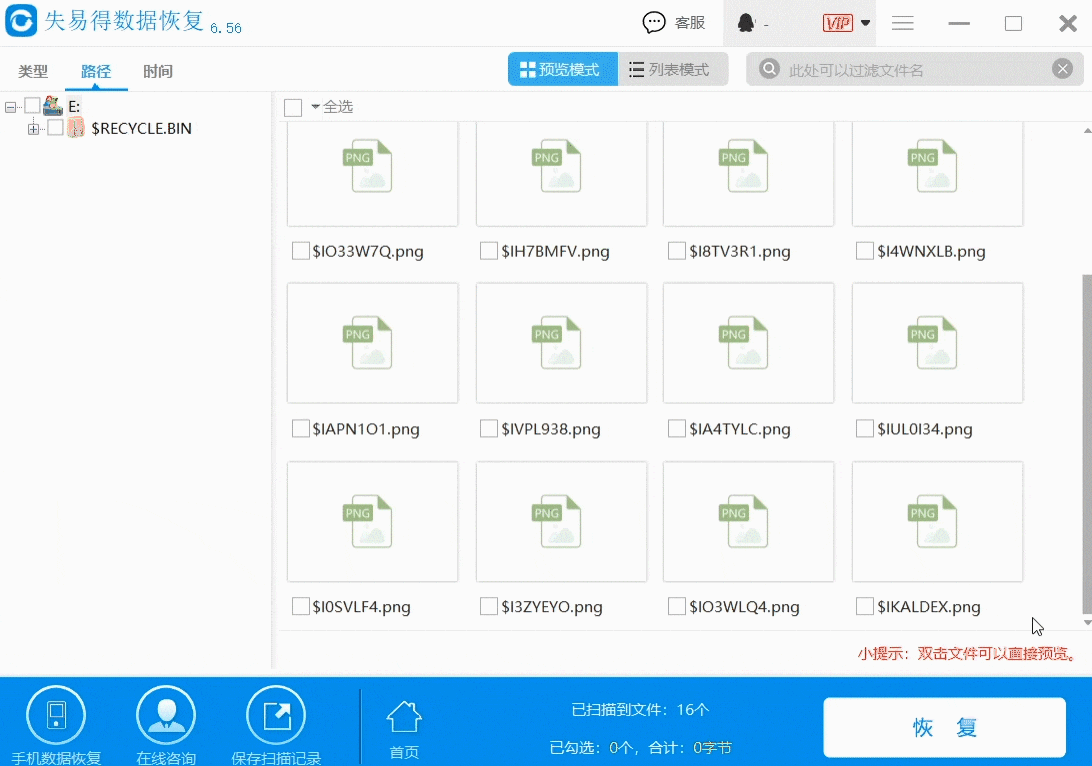 5 扫描完成后,您想要的文件将显示在接口上;勾选后,单击下面的恢复按钮将丢失的文件恢复到计算机上,同时铭记内容不应保留在桌面上。