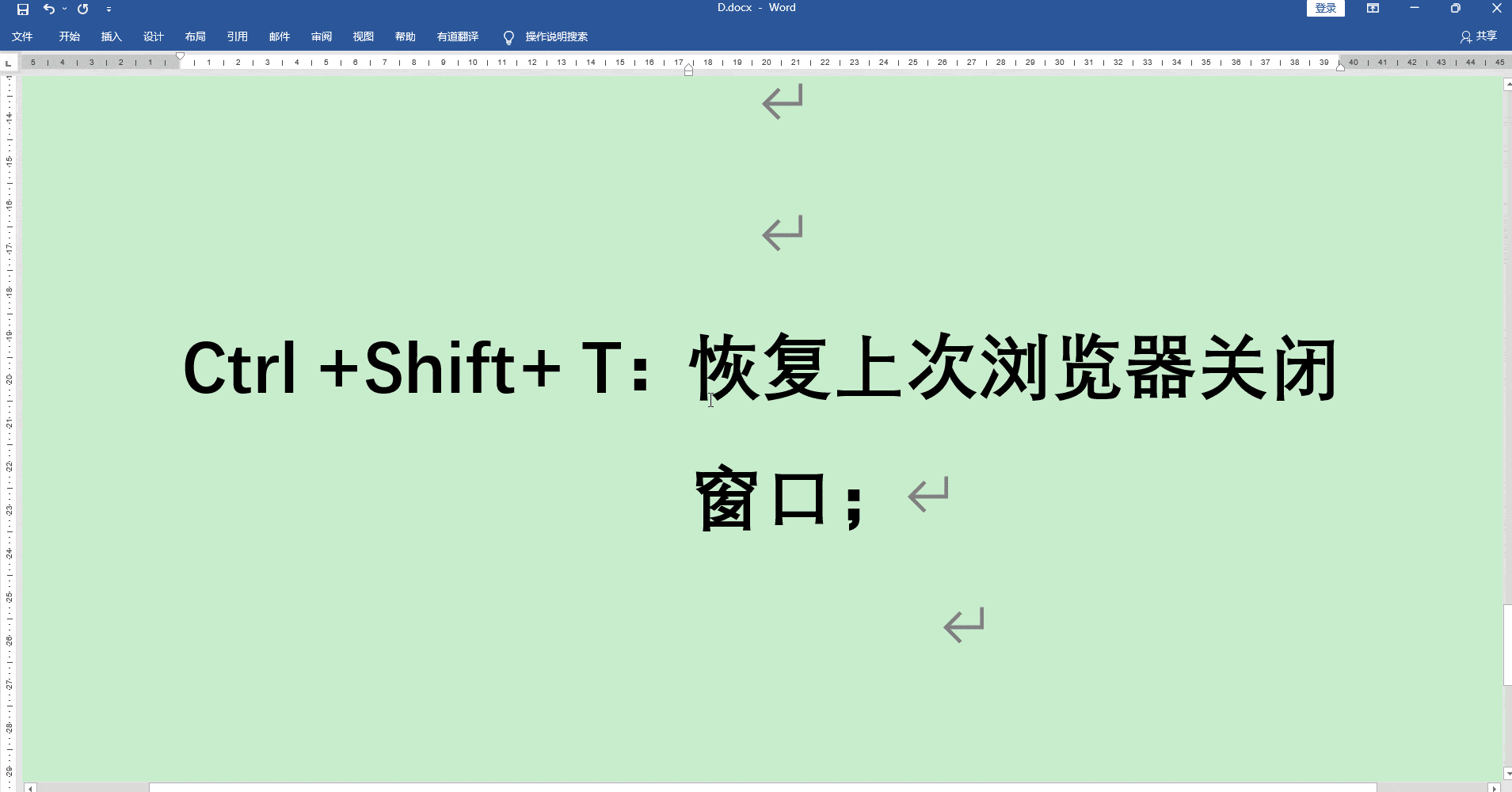 Ctrl+Y:重复步骤程序;在文字编辑中使用这些程序将大大提高效率。
