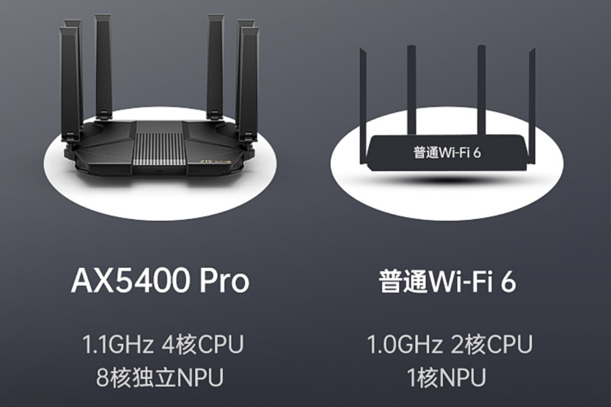 AX5400Pro AX5400Pro 使用一个自我研究的网络芯片,其核心设计为12个核心设计,当然是营销。 它的CPU部分是4个核心规格,其他8个核心是NPU。 最大频率为1.1千兆赫,其中数据通过量可达20千兆赫,产品的另一个销售点是,传送速度不是千兆字节,而是2.5千兆字节,这与处理者的数据吸收能力相对应。