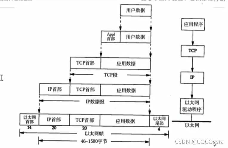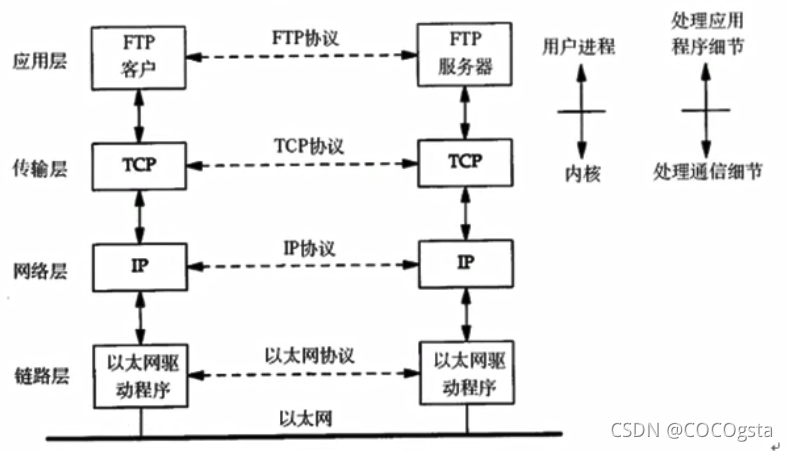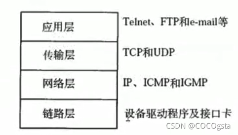 如下图所示,TCP/IP网络协议商店分为应用、运输、网络和链接(链接)层。