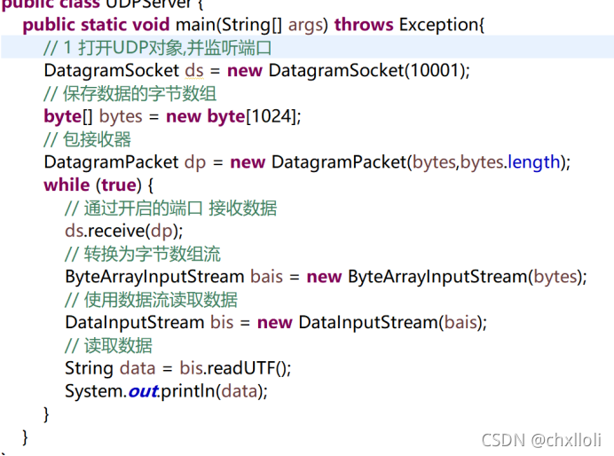 - 此组合中的数据包为公共无效接收( DatagramPacket p) 所接受。 当此方法返回时, 收到的数据由数据组包缓冲区填入。 数据包中还包含发件人的IP 地址和发件人系统中的端口号。 此方法在数据收到前停止使用。 所收到信息的长度存储在数据包对象的长度字段中。 如果信息超过软件包的长度, 将会缩短 。