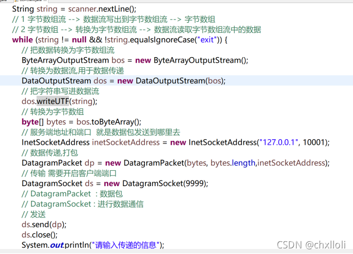 - 公共无效发送 (DatagramPacket p) 从此软件包中传输数据包。 数据grampack 包含信息指示: 要发送的数据、 其长度、 远程主机的 IP 地址、 远程主机的端口号 。
