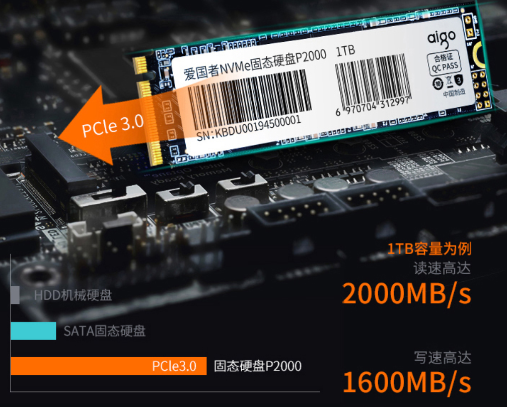 旧计算机必须与硬盘接口兼容,Aigo固态硬盘P200使用PCle3、四道高速接口、NVME1.技术标准以及高性能总控制芯片,大大提高计算机启动、图形处理和赌博的速度,并全力提高每次操作的速度,使计算机能够再生。