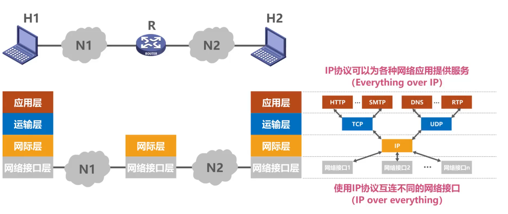 TCP/IP结构的网络间层向上层提供断开和不可靠的传输服务,并在运输层使用UDP协议时向上层提供不连接和不可靠的传输服务。