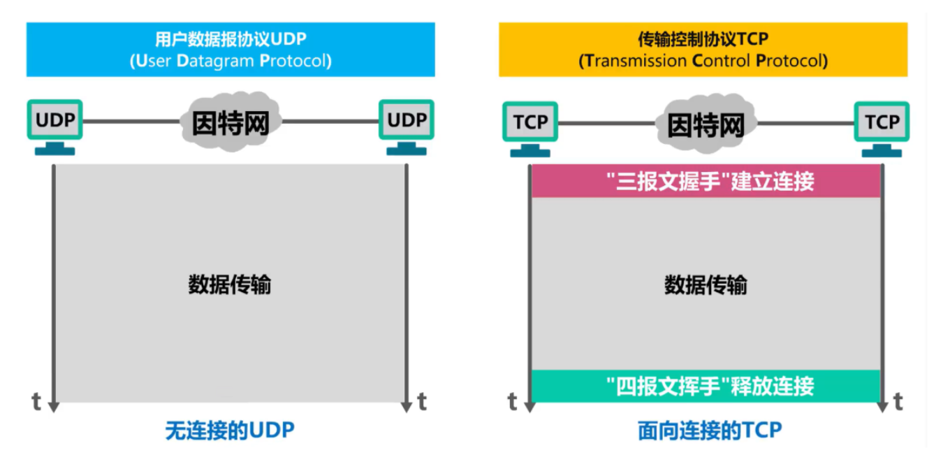 | UDP | 否 | 不可靠 | 数据报文段 | 快 | 少 | 即时通讯、域名转换 | 8个字节 |