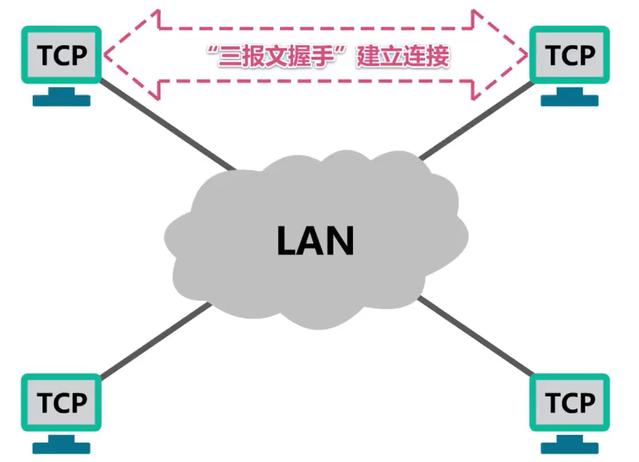 同样,对于使用TCP协议通信的TCP协议,双方必须使用三条电文握手,以便在数据传输之前建立TCP连接,一旦数据传输完成,必须使用四条电文释放TCP链接,应当强调,所谓的连接是指逻辑连接,而不是有形连接。