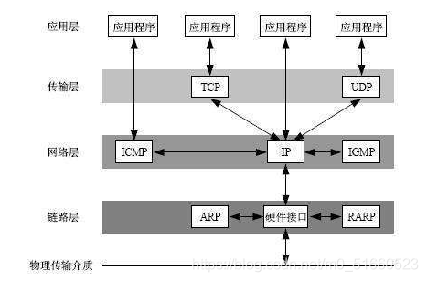 TCP/IP通信议定书有四级分级结构,各级依靠以上一级提供的网络满足其要求。