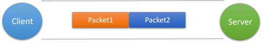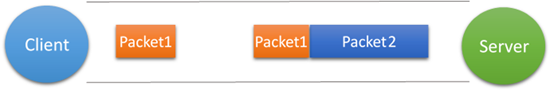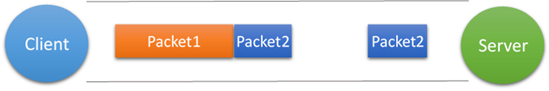 二. 在接收端,只收到一个数据包,但该数据包包含发送端提供的两个数据包的信息,这是一个粘滞现象,对接收端具有挑战性,因为接收端不知道两个数据包的边界。