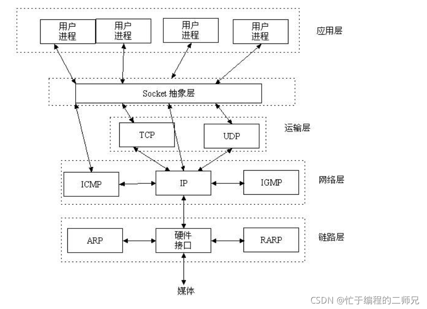 套接字是通信的基础。 它的帮助。 TCP/ IP 协议是道路通信的基本操作模块。 套接字可以被视为不同主机之间两次进程沟通的终点, 形成单一主机内部和整个网络的编程界面 。
