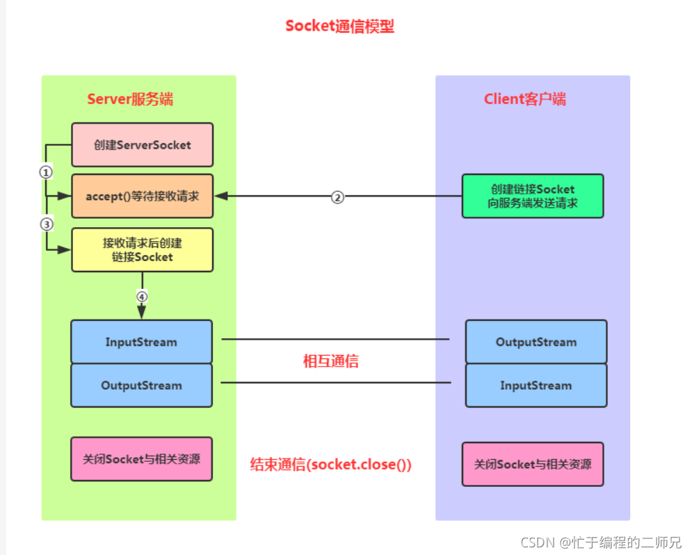 第1步:设置服务器运行服务器ServerSocket. 接受() 功能, 等待客户端连接 。