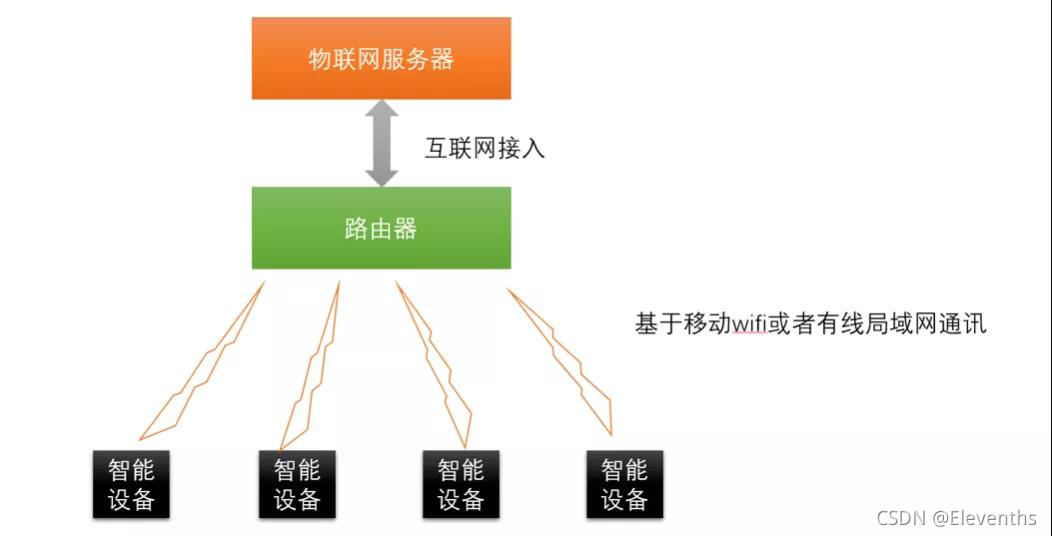云层网络平台和设备之间的所有通信基本上都以TCP/IP协议为基础,只是重覆数据包,这就是为什么我们可以用wifi,4g作为设备与云层平台之间的通信工具,但是设备与设备之间也可能有通信,wifi、蓝牙、Zigbee等等,下文将讨论一些典型的通信结构。
