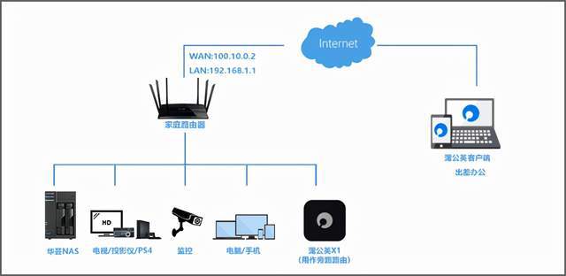 如下图所示,Pin X1的负责人非常小,几乎不存在,最重要的区别在于Pin X1和其他网络产品是在主路由器下运行的,而主路由器仅相当于区域网络中的一个人,不以任何方式改变原网络结构。换句话说,它是一个虚拟域网,一个基于原网络的旁路网络等。