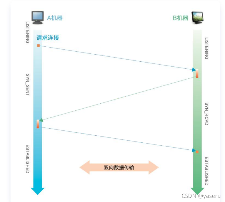 第三,在连接关闭前B机器就绪后,将FIN+ACK发送到A机器。