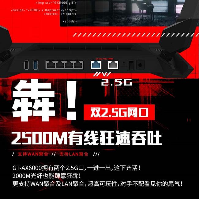 信息技术之家发现,ROGGT-AX600是第一个推出双倍2.5G互联网门户的。 这种设计不仅能满足Wi-Fi 6网络,即巨大的千兆字节纤维带宽,而且还能进一步提升局域网的上行链路。 此外,该设备支持WAN/LAV链接聚合功能并改善可播放性。