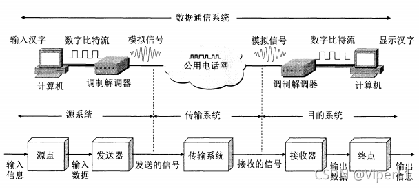 源系统(终端、发送器)、传输系统(传输网络)和目的地系统(接收器、接收器)都相互关联。