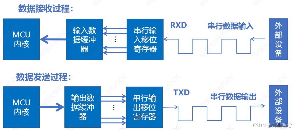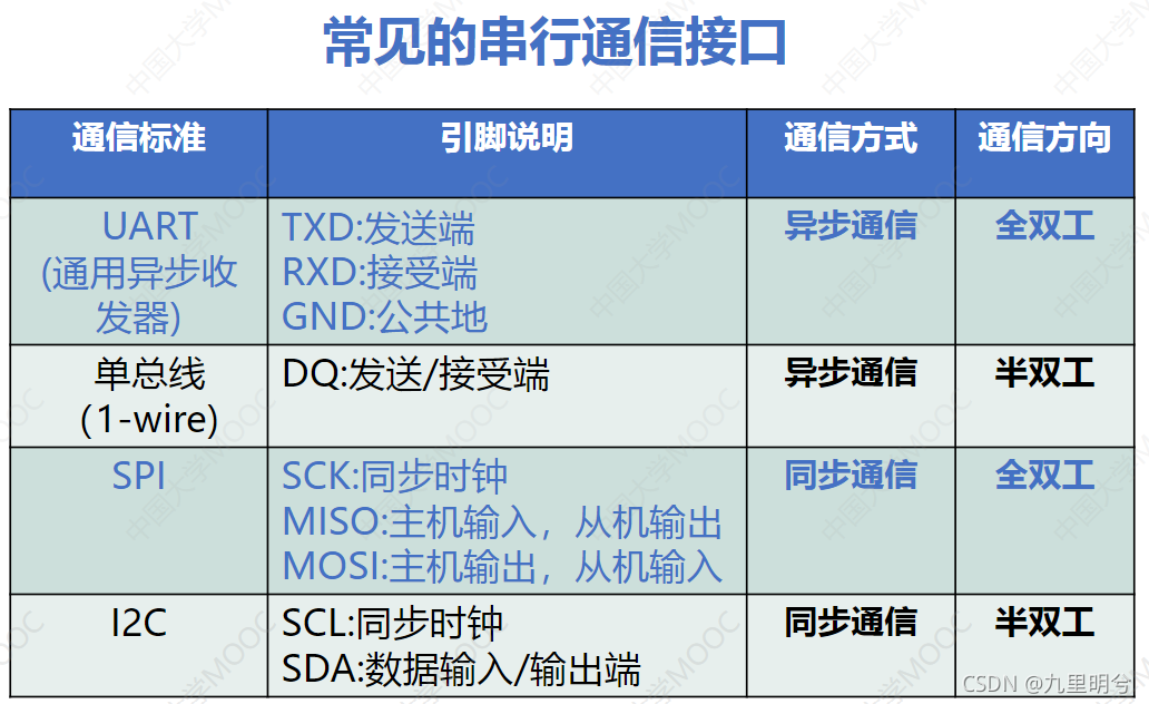 同步通信(与时同步信号传输),如SPI、IIC以及人类学通信(无时钟信号),如UART、单班车。