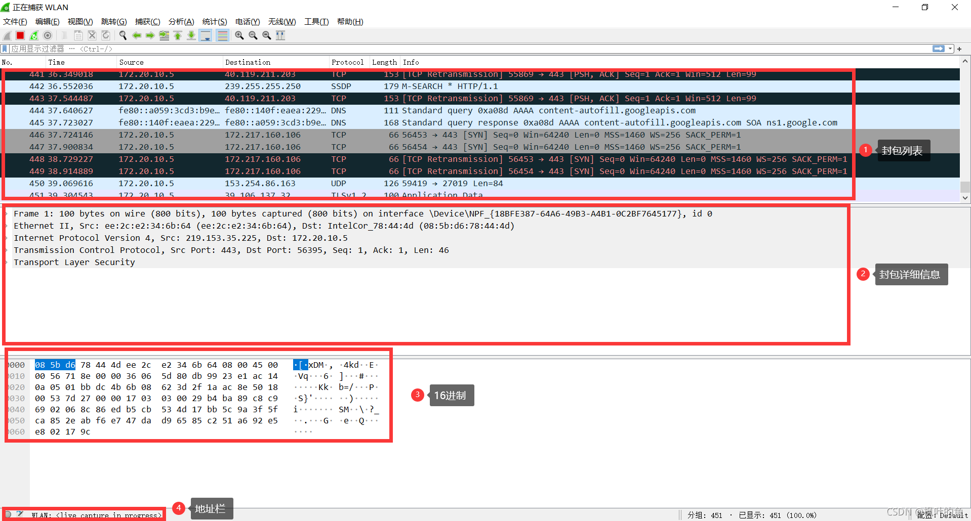 Wiresark(前Etheeal)是网络软件包分析软件,目的是拦截网络软件包,尽可能在网络软件包上显示具体的信息。 Wiresark利用WinPCAP作为接口,直接与互联网卡直接交换数据。