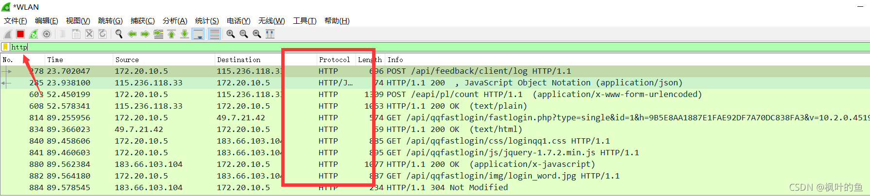 因此,要过滤信息,请在过滤器(红框)中输入 http。