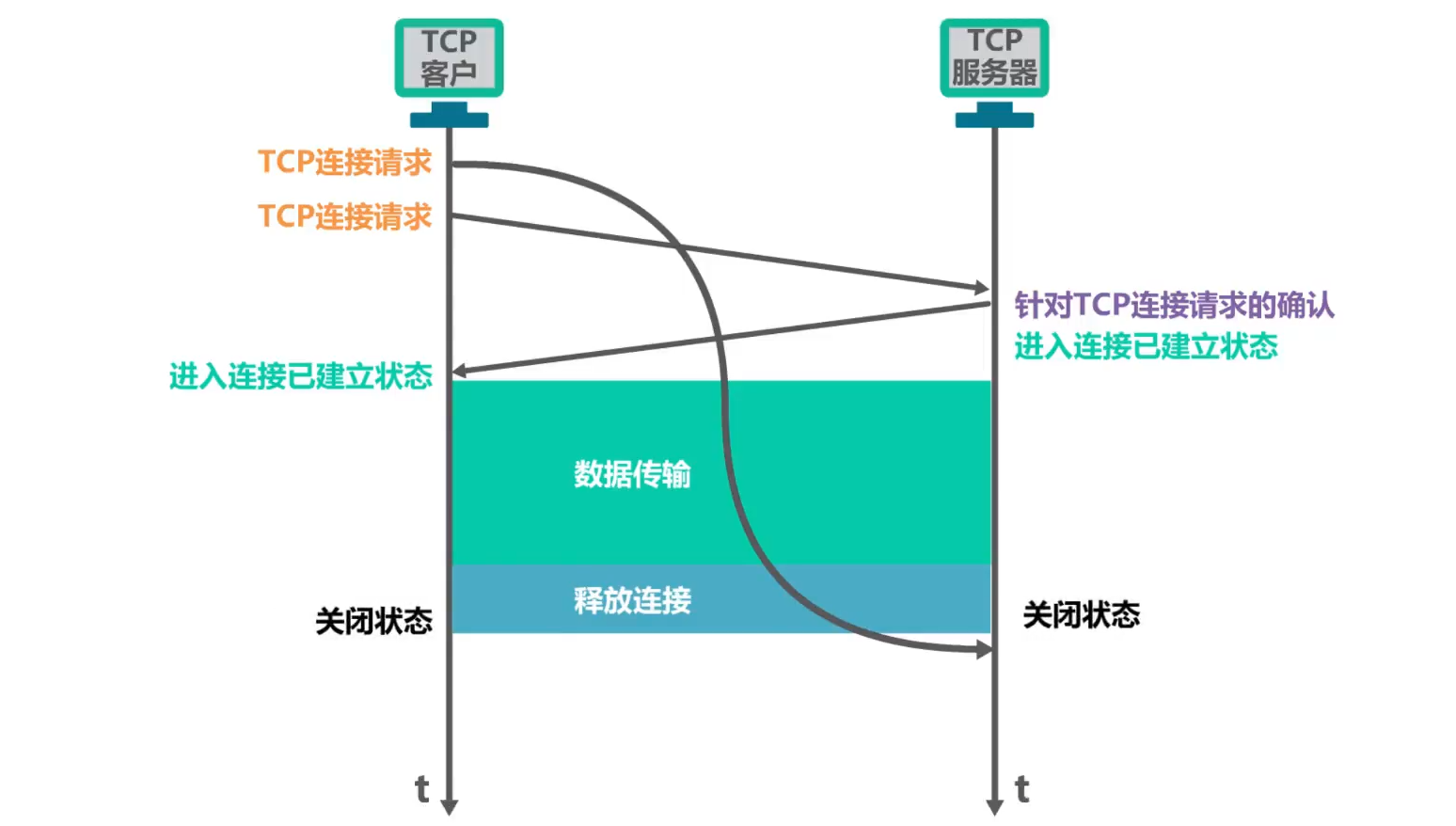 当TCP服务器程序收到TCP连接请求时,如果该连接被接受,TCP确认请求被送交TCP客户程序,与接收国同步。