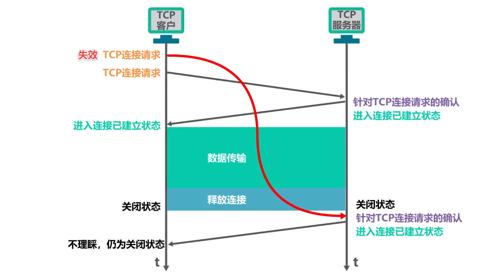 在这种情况下,TCP客户程序发出了TCP连接请求,但报告文本在某些网络节点停留了很长一段时间,导致不可避免地重新传送文本。