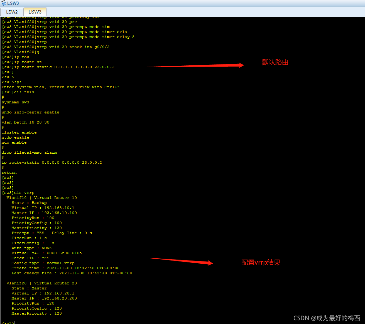 VRRP(虚拟道路冗余协议 ) : 外部通信是通过将许多道路与设备合并以形成虚拟路由器设备来实现的,虚拟路由器的管道地址是用户默认的网关地址。 当网关设备失败时, VRRP协议能够迅速选择新的网关设备以吸收数据流并提供稳定的网络连接。