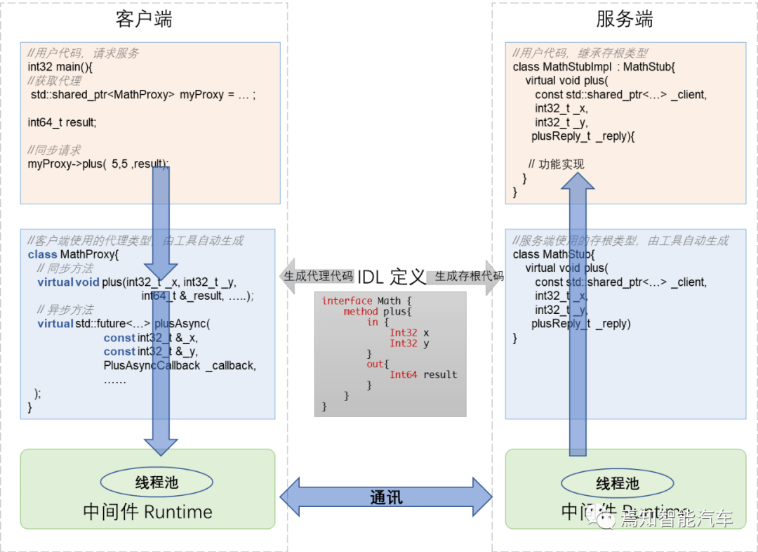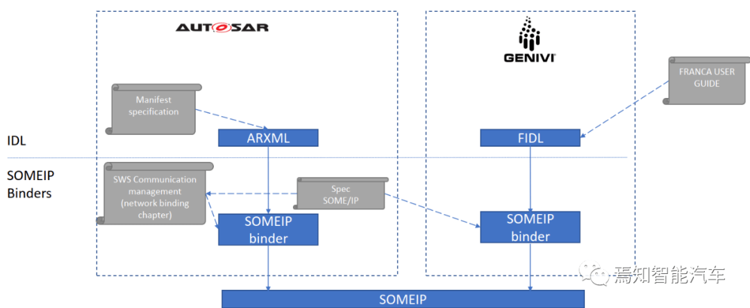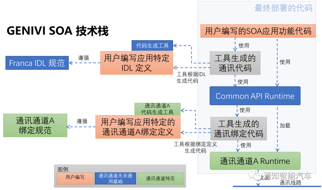 为此,必须开发适当的代码生成工具,根据IDL规格(如ARXML或Franca)建立的支持界面,以制作适合某些区域贸易机会的代码,并完成与SOA有关的互动。