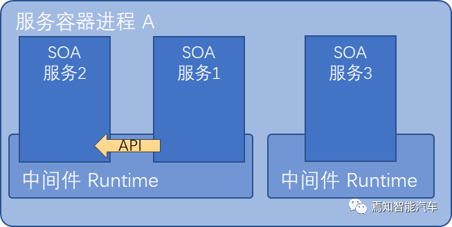 服务集装箱的主要目标是实现3.3.3.6“服务组装”方法,为SOA服务提供部署和管理服务的自由(此处的集装箱与Docker集装箱没有联系)。 同时,如果你想实现4.3.3。 科内所述SOA服务之间的通信在过程中直接通过API调用,也必须得到服务集装箱的支持。 9 两项服务与负责内部API对接和美学处理的同一中间批次共享,在不同的SOA服务的服务集装箱程序中也可能有许多中间体,尽管“API-in-process”服务之间的通信难以实施。
