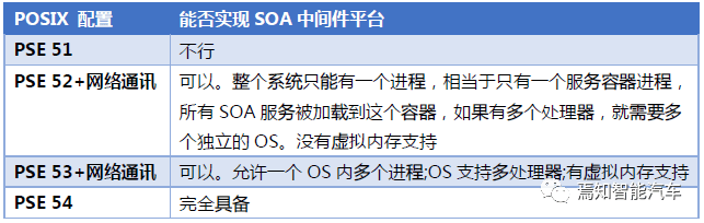 如果我们想要建立一个SOA中间平台,下表将概述该领域每个POSIX配置的能力。