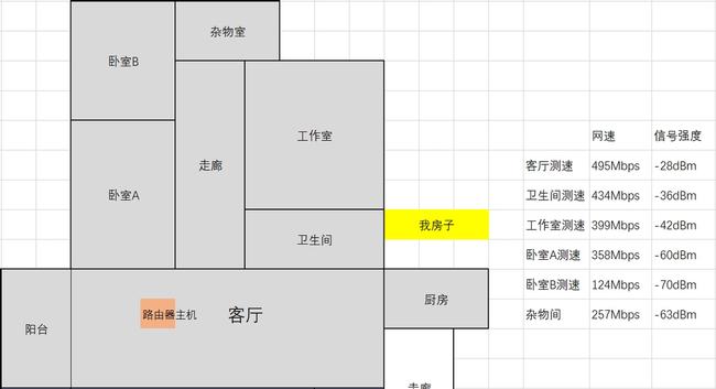 首先,在我家,测试主机的信号质量,在家中和在客厅测试500兆克宽带,测试达到495 Mbps,几乎完全达到495 Mbps。 浴室、工作室和工作室也大约400 Mbps,最远的出入口仍然达到257 Mbps;毕竟,这两个卧室实际上是最经过测试的信号覆盖,毕竟有一个非常厚的墙面和壁橱,有通往走廊方向的门道和信号。