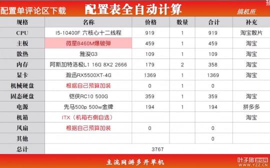 高达400美元的计算机配置是一个中端多玩家。 因此, CPU选项在100美元之内是最流行的 CPU i5- 10400F, 可见卡是高性别比的选择, RX5500XT-4G, 核心部件的成本高达2288美元, 约占整个预算的60%。 为微星选择B460M炸弹也是以后更新计算机的便捷方法。