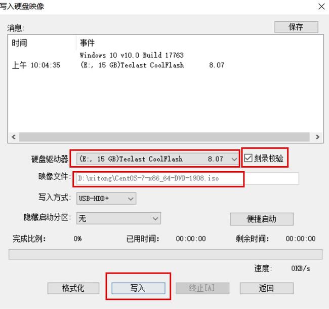 选择闪存驱动器,然后选择“记录检查”和“写”一经验证,即选择“记录检查”。
