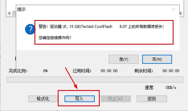 4 选择“写入”以显示闪存驱动器格式化,不论信息是否由点支持,然后自动格式化。