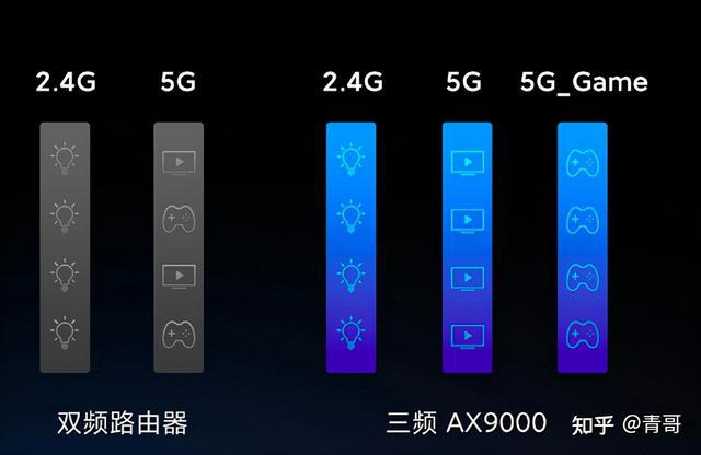网络在传输过程中消耗了一定数量的带宽,因此,如果是三频路由器,则可能有一条专用于数据传输的线路,一条与移动电话和计算机相连的线路,其余的2.4g用作单一的智能主线。