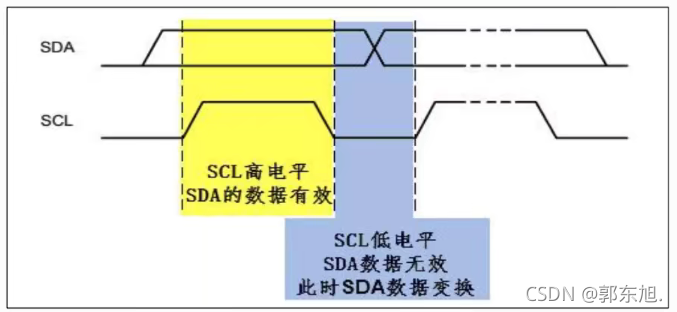 当SCL为低水平时,SDA数据是无效的,而目前SDA通常为下一个数据转换准备就绪。