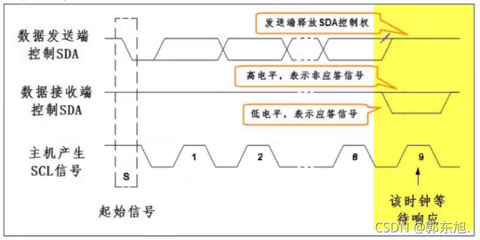 I2C 数据和地址传输使用“回复(ACKs)”和“非回复(NACKs)”信号确认。