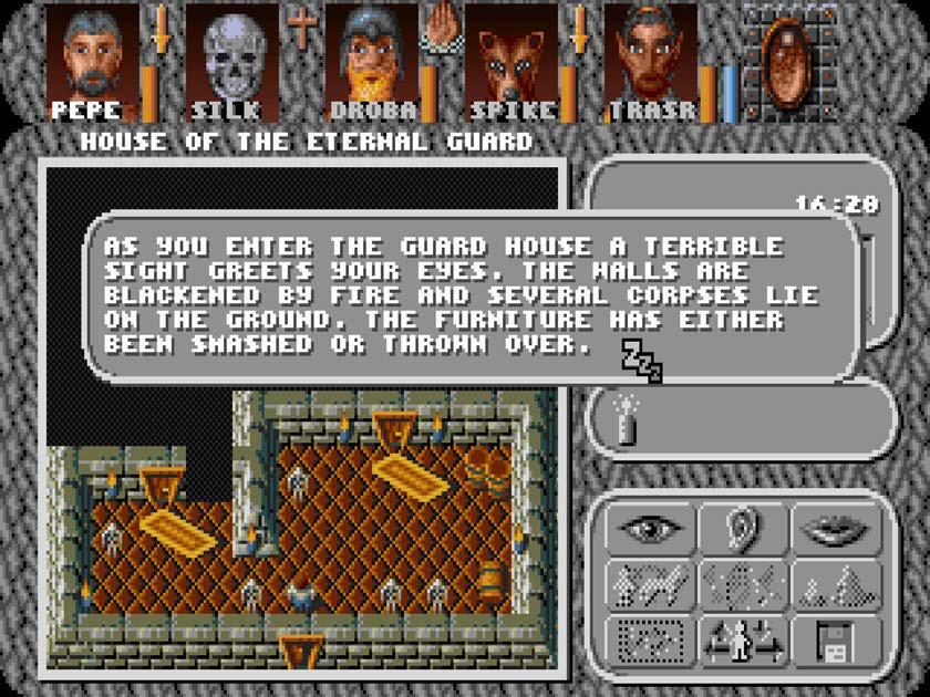 好吧,让我们来看看游戏本身的情况。“安珀月”的图案是在“安珀星”之后的几十年里制定的,而游戏结构几乎是一样的:同样的圆形格斗、相同的项目栏和相同的对话系统。两种探索观点也保持不变:45度等同的建筑和田地,以及具有第一人视角的地牢和城镇——然而,现在,这是3D的第一个。