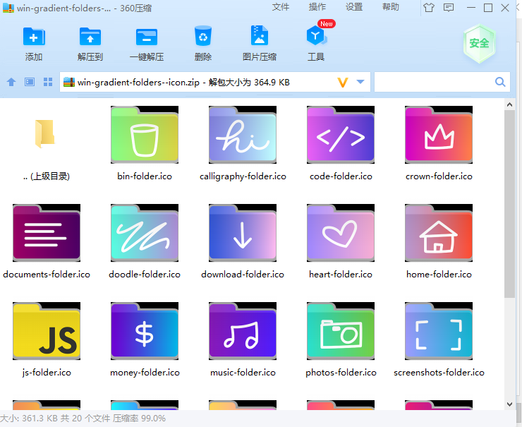 渐变文件夹是由 38 个渐变色文件夹图标组成的集合。 它与 Mac 和 Windows 兼容, 下载并保存本地计算机的拉链软件包。 打开需要更改颜色的文件夹, 右键打开属性, 切换到自定义函数页面, 点击 更改图标, 选择颜色, 并识别不同颜色类别中的不同文件夹 。