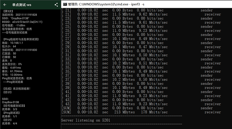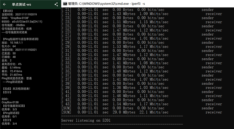 首先,4G网络容量有限,特别容易受到干扰,其近点最大速度约为178mbps(理论上为400mbps),距离速度立即下降到22.1Mbps,其优势在于信号强度,在越过隔离墙后保持-39dBm。