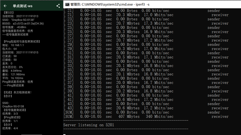 5G Wi-Fi的性能是体面的,近点速率为533 Mbps(理论最高速度为833 Mbps),可以维持在大约340 Mbps的距离上,即使与2.4 G Wi-Fi相比,由于干扰,延迟也微乎其微,信号强度略低,但仍处于未达到的水平。