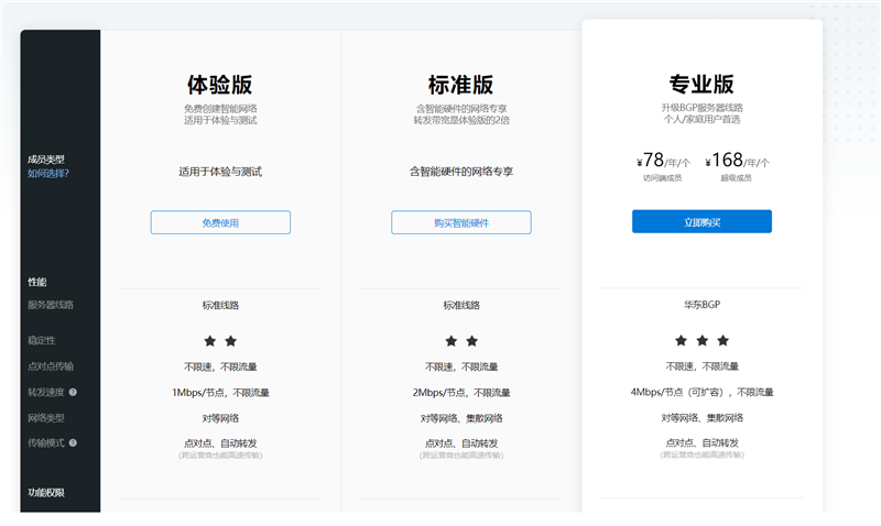 智能组网络提供三种选择:同行对等网络、密集网络和零信任网络,它们可能适合不同情况的需求。 网络建立后,可以通过其他公共接入SN代码加入更多成员,并有管理不同成员的接入规则。